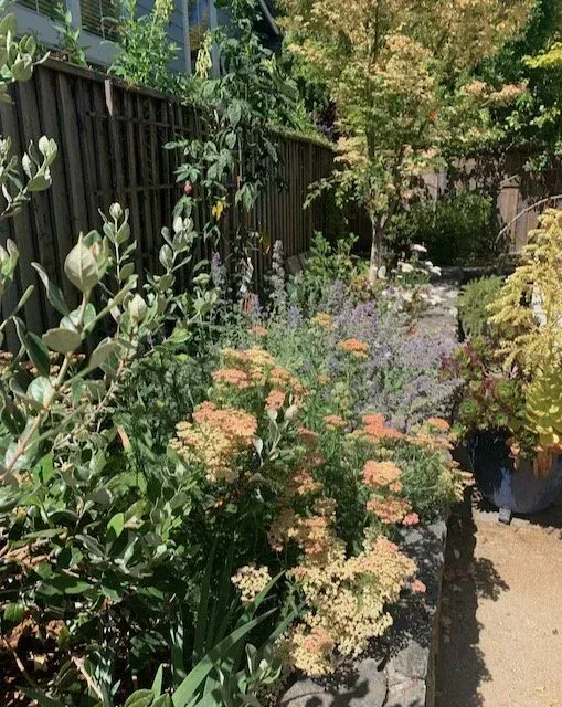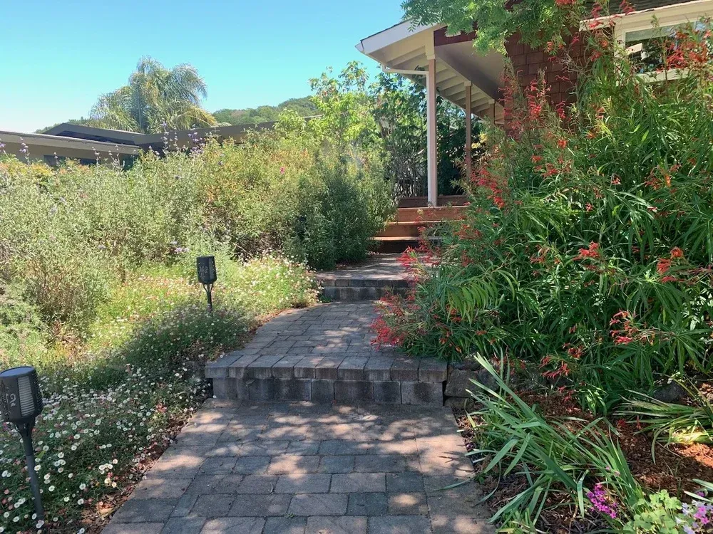 This home in rural Novato is the client’s retirement sanctuary. Mostly new construction, the gardens here were essentially a blank slate. Low-water, pollinator-friendly, and high enjoyment were the goals of this project.