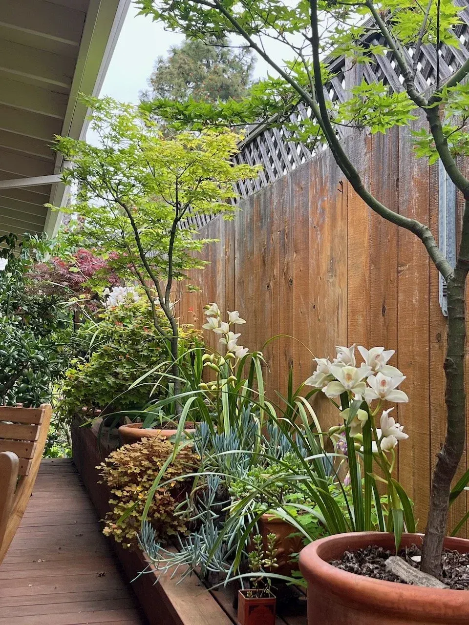 This large, beautiful backyard located at a historic Marin home needed a refresh. A lot of shade from several stunning, mature trees made choosing the correct plants for the space imperative. The degraded pathways and stairs needed to be replaced for safety and usability. Together with the client, we designed a lovely, peaceful classic California landscape perfect for strolling and sitting.